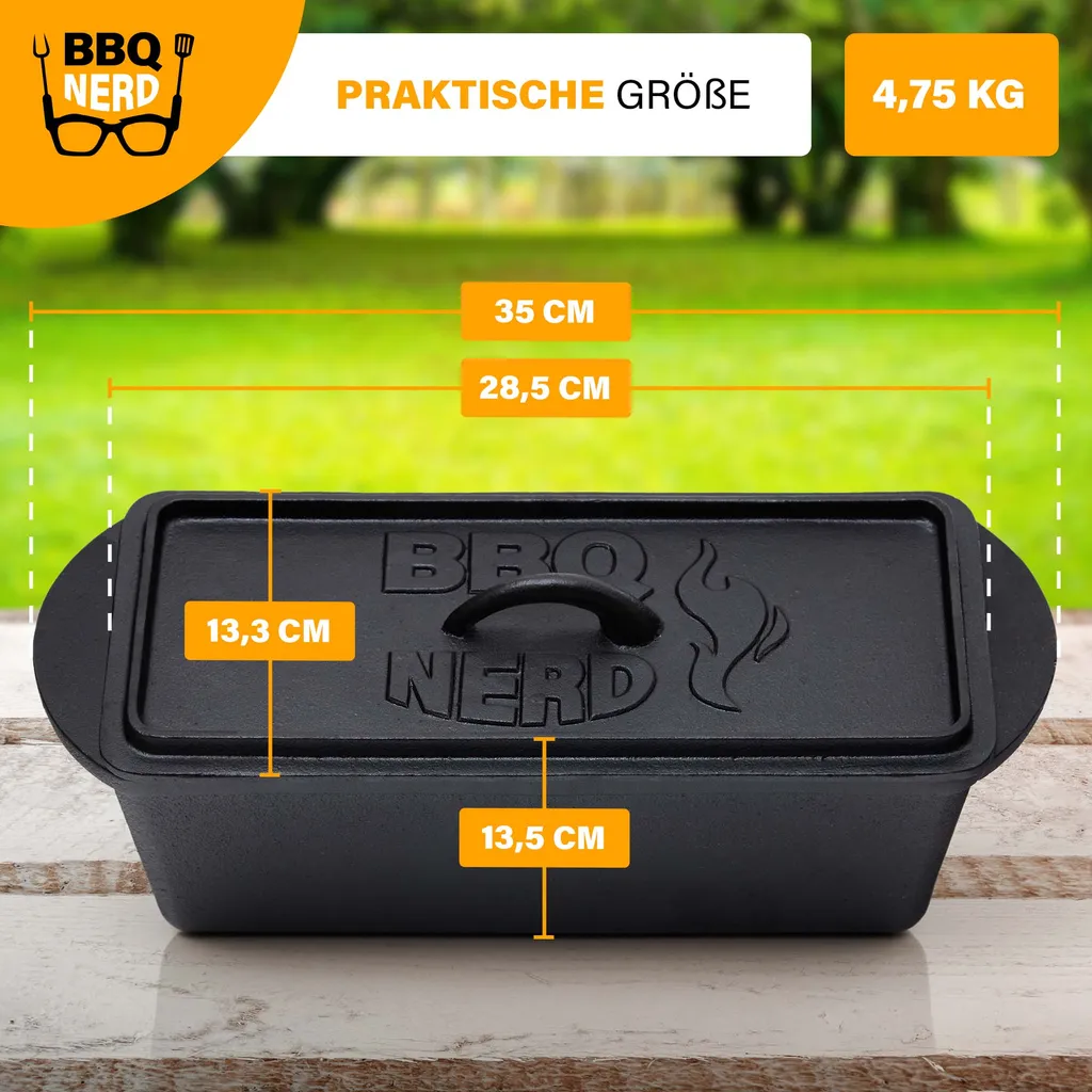 BBQ-Nerd© Kleine Brotbackform 3 L – Gusseisen Kastenform Mit Deckel – Backform Für Ofen, Grill, Feuer – Brottopf Dutch Oven Für Hackbraten Fleischkäse Brot
