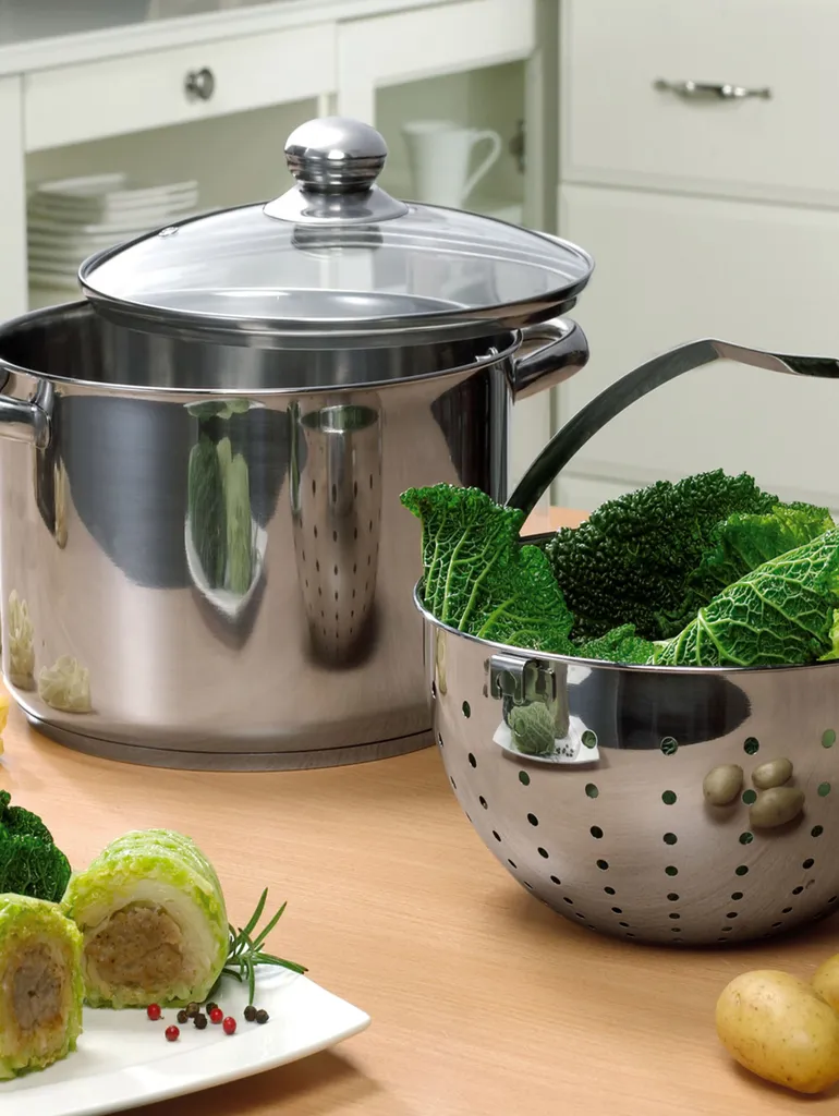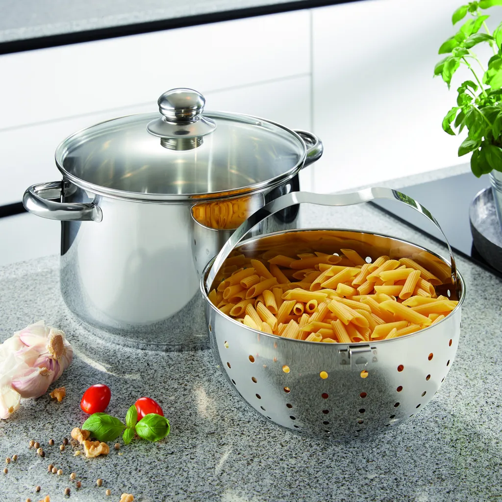BEYOND® Edelstahl Kochtopf 24 Cm, Mit Glasdeckel Und Herausnehmbarem Siebeinsatz