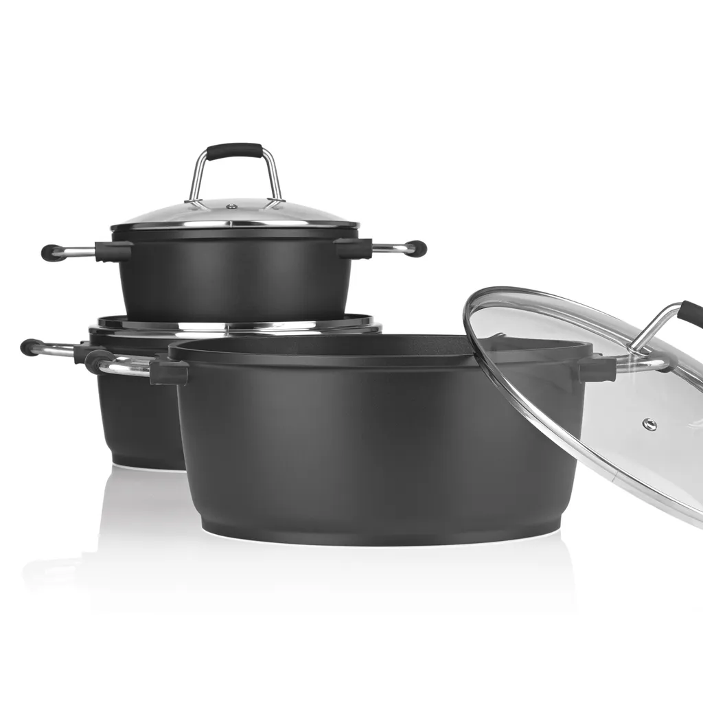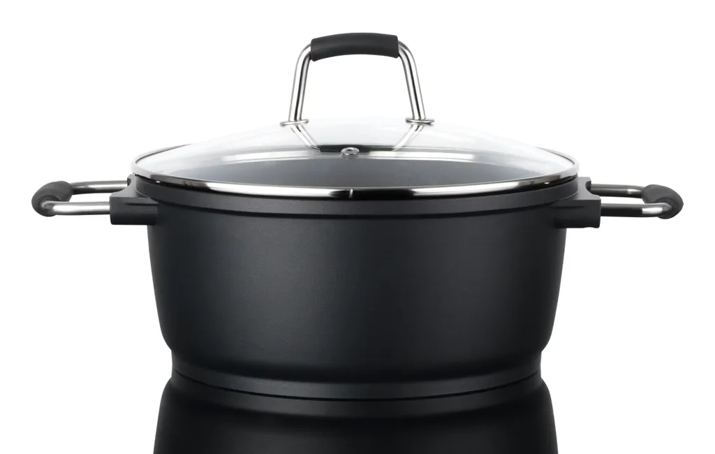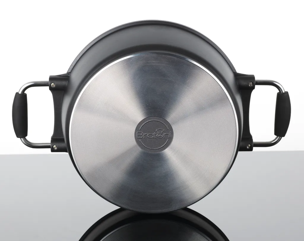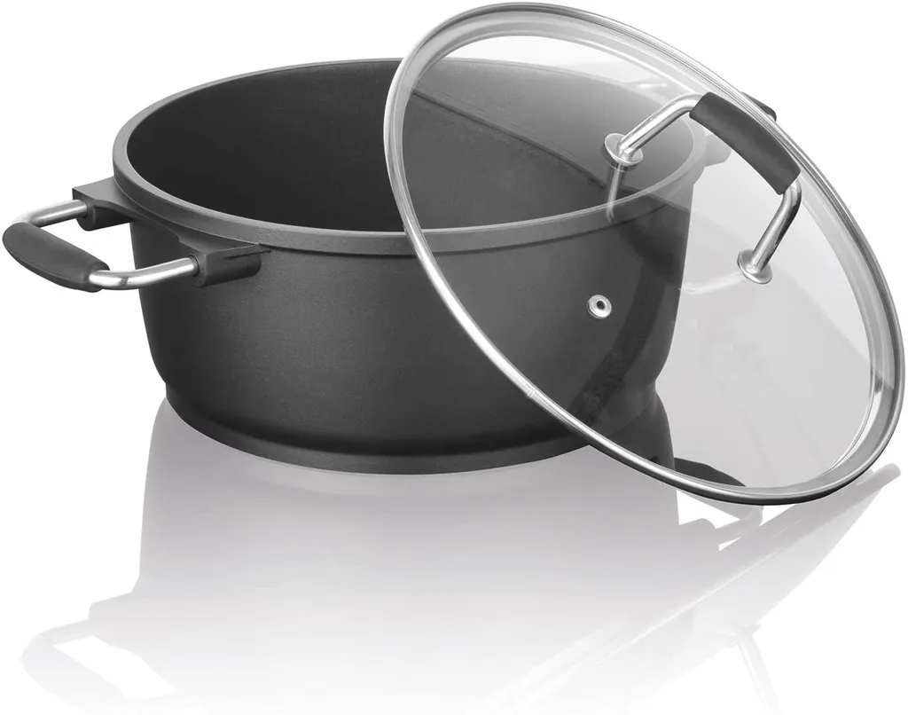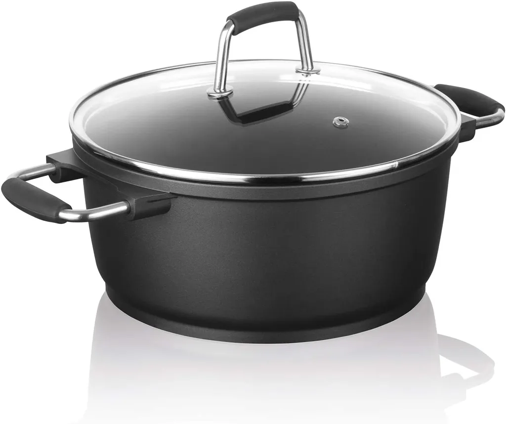 Bratoni Aluguss Kochtopf 24cm 4,5L | Glasdeckel | Antihaft | Kraztfest | Schwarz