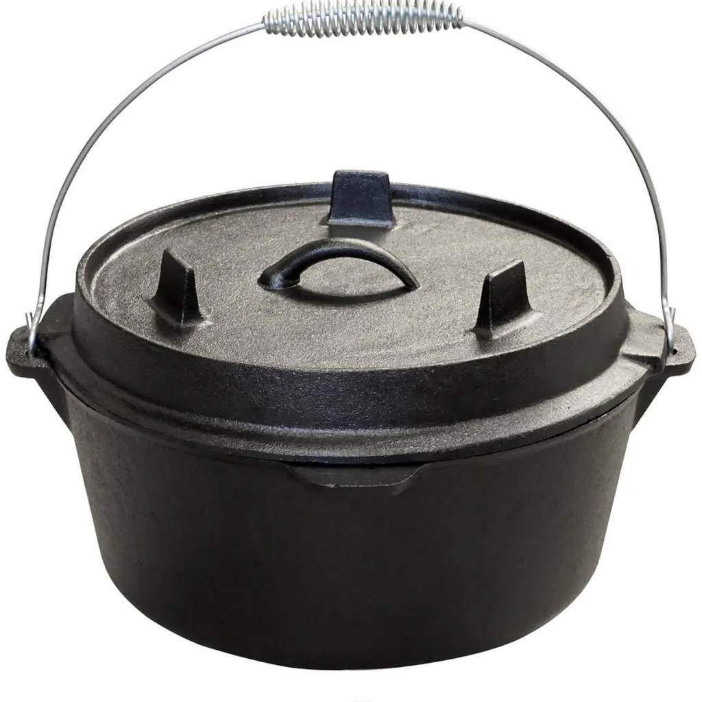 Dutch Oven | Feuertopf Qt 4.5 Ohne Füße Aus Gusseisen – Camping Bräter BBQ