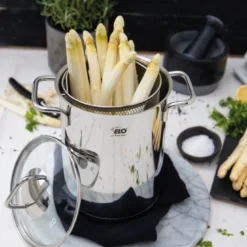 Edelstahl Spargeltopf Mit Siebeinsatz Und Glasdeckel Fassungsvermögen 3,9ltr. Für Alle Herdarten Und Induktion Inkl. Einem Gratis Spargelschäler