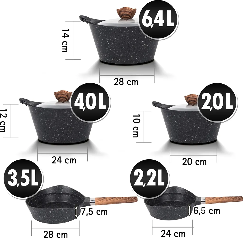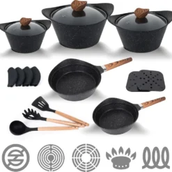 Fiora Topfset 19 Teilig Antihaftbeschichtung Aluguss Induktion Für Alle Herdarten Spülmaschinengeeignet Kochtöpfe Mit Pfannen