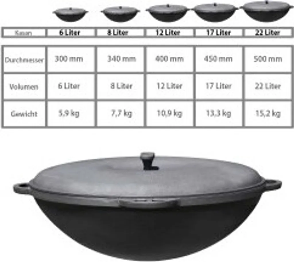 GUSSEISEN KAZAN 17 L (ASIATISCHE KASAN) Mit DECKEL, KESSEL, SYTON,