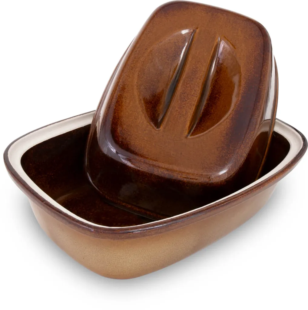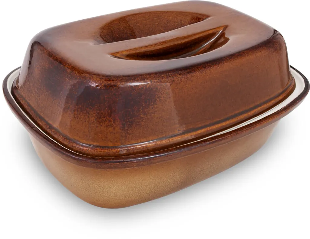 Original KERAZO Bräter 3 Liter Aus Steinzeug-Keramik Mit Deckel Braun-geflammt