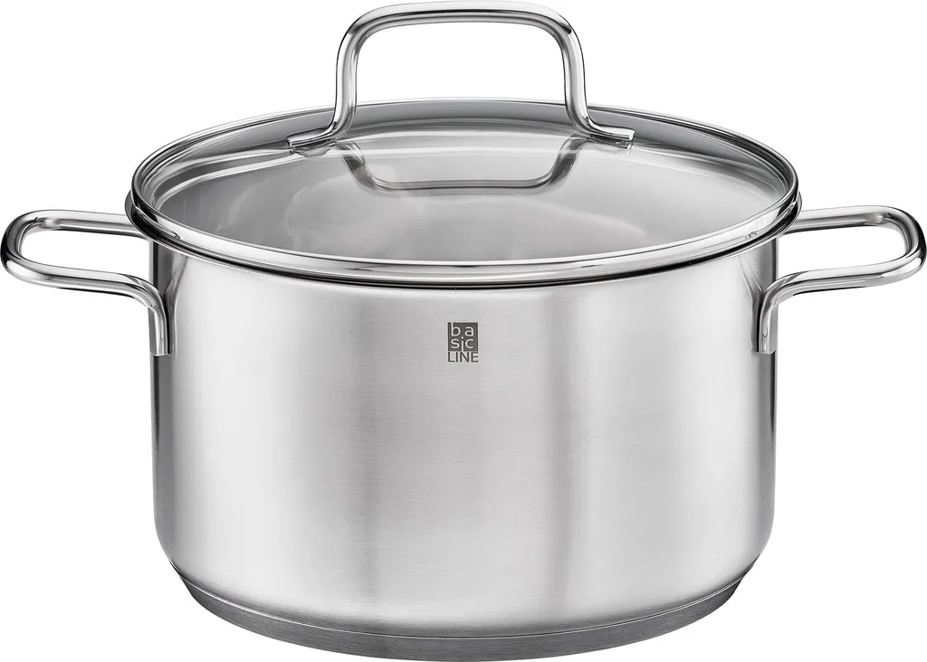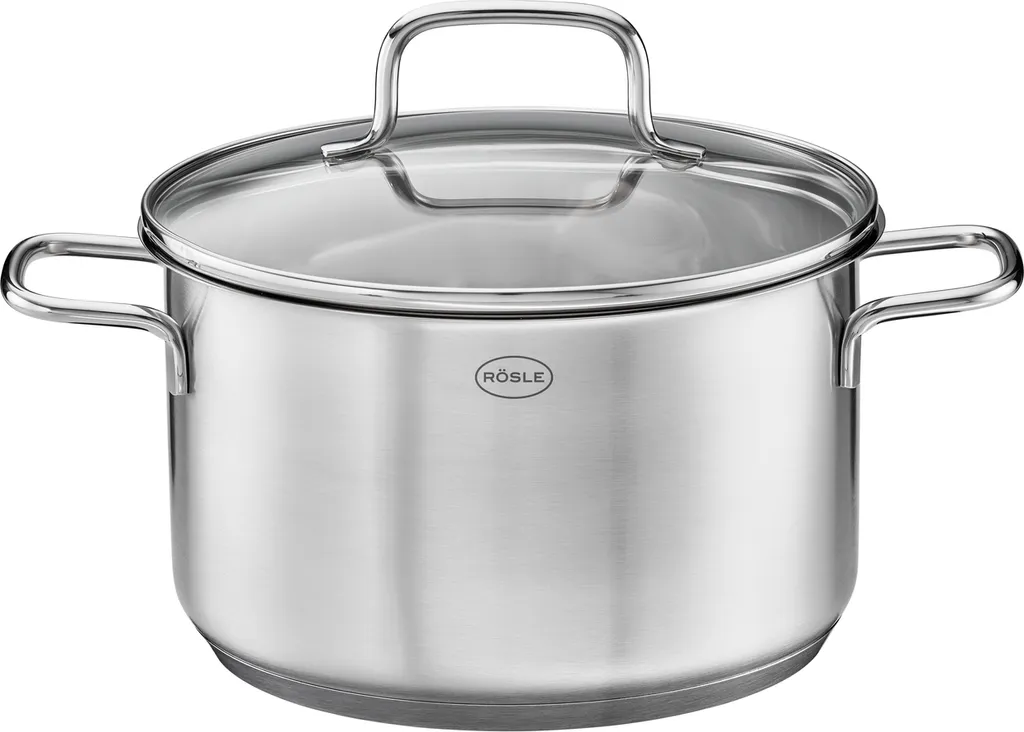 Rösle RÖSLE Basic Line Kochtopf Ø 24 Cm, Edelstahl 18/10, Mit Schüttrand Und Glasdeckel, Spülmaschinen- Und Induktionsgeeignet