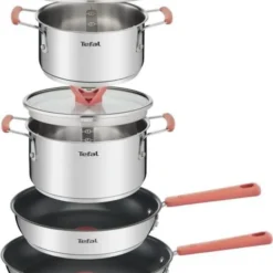 TEFAL G720S604 6-teiliges Stapelbares Kochgeschirrset OPTI’SPACE – Edelstahl – Alle Kochfelder Inklusive Induktion