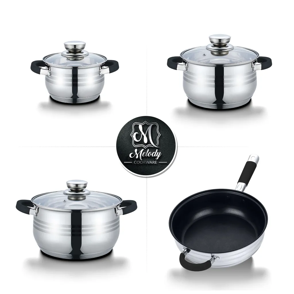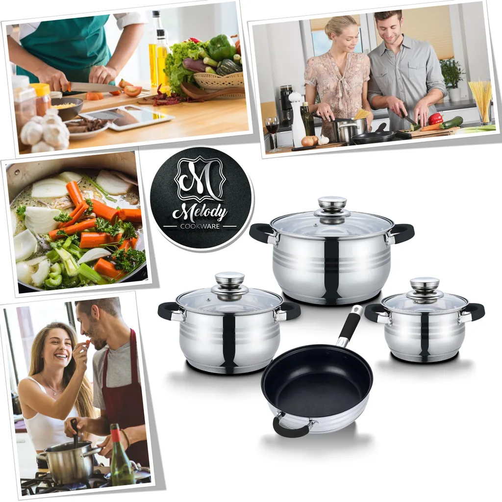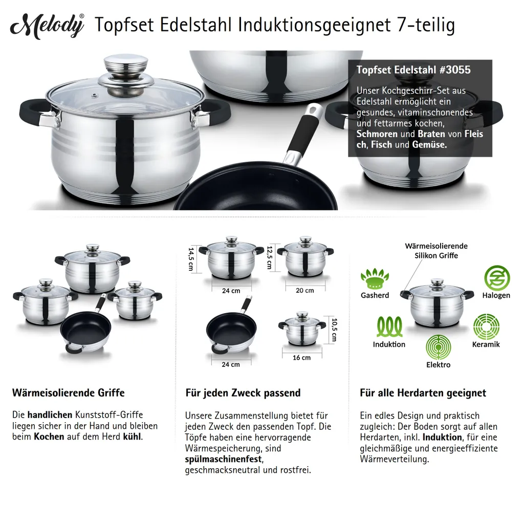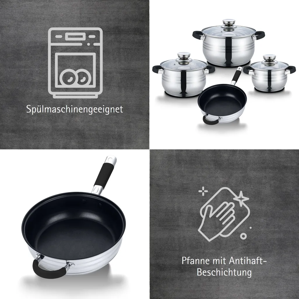 TopfSet Induktion 7-Teilig Edelstahl Alle Herdarten Töpfe Kochtopf Pfannen Set Schwarz